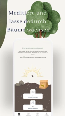 Sovellus tarjoaa rikkaan kirjaston ohjattuja meditaatioita, rentoutusharjoituksia ja lempeää joogaa, jotka tukevat hyvinvointiasi. Voit tallentaa suosikkisi ja nauttia sisällöstä myös ilman verkkoyhteyttä. Erityinen ominaisuutemme, "kasvata puuta" -ohjelma, yhdistää henkilökohtaisen kasvun ja globaalin hyväntekeväisyyden. Jokainen meditaatiohetkesi kasvattaa virtuaalista puuta, joka täydennettyään muuttuu oikeaksi puuksi jossakin päin maailmaa. Näin jokainen tietoisuuteen panostettu minuutti edistää paitsi omaa mielenrauhaasi, myös konkreettista hyvää planeetallemme.