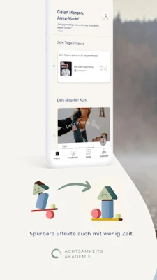 Koe elämänmuutos kohti syvempää tyytyväisyyttä ja mielenrauhaa Achtsamkeitsakademien avulla. Monien käyttäjien heijastama rauhoittuminen, selkeys ja ilo ovat nyt saavutettavissa päivittäin, vain muutamassa minuutissa. Tämä tieteellisesti perusteltu lähestymistapa kutsuu sinut matkalle, joka vähentää stressiä ja ahdistusta ja ohjaa sinua kohti eheämpää ja onnellisempaa itseäsi. Achtsamkeitsakademie edustaa muutosta kiireisestä suorituskeskeisestä yhteiskunnasta kohti suurempaa yhteyttä, tasapainoa ja sisäistä rauhaa, perustuen aitouden, myötätunnon ja tietoisuuden arvoihin.