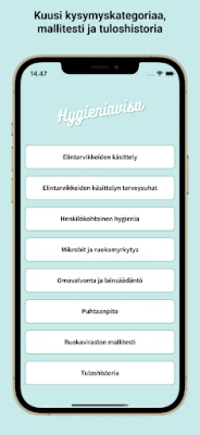 Valmistaudutko hygieniapassin kokeeseen? Hygieniavisa on luotettava kumppanisi matkalla kohti virheetöntä suoritusta. Tämä sovellus on suunniteltu erityisesti ravintola- ja elintarviketyön ammattilaisille, jotka haluavat hallita elintarvikehygienian perusteet vaivattomasti. Unohda monimutkaiset rekisteröinnit ja häiritsevät mainokset – Hygieniavisa tarjoaa selkeän ja keskeytyksettömän oppimiskokemuksen ilman jatkuvia maksuja.