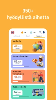 FunEasyLearnin sydämessä on kielitieteilijöiden ja opettajien kehittämä mullistava menetelmä. Se yhdistää yli 6 000 jatkuvasti laajenevaa norjan sanaa ja 5 000 käytännön lausetta kattavaksi kokonaisuudeksi, joka on jaoteltu loogisesti tasoihin ja aihealueisiin. Opi ääntämissäännöt perusteellisesti, laajenna sanavarastoasi ja hallitse päivittäisen keskustelun sekä matkailun vaatimat fraasit. FunEasyLearn tekee oppimisesta visuaalista ja interaktiivista – yhdistä sanat kuviin, kuuntele natiivipuhujia ja harjoittele puhetta, kirjoittamista sekä kuuntelua innovatiivisten pelien avulla.