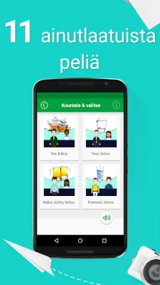 Opi ruotsia erottuu muista innovatiivisella lähestymistavallaan. Sen avulla voit harjoitella missä ja milloin tahansa, sillä täyteen toimivuuteen ei tarvita internet-yhteyttä. Jokainen yli viidestätuhannesta yleisimmästä ilmauksesta on varustettu autenttisella ääntämistallenteella ja foneettisella transkriptiolla, jotta opit sanomaan asiat täsmälleen oikein. Oppiminen tapahtuu leikin kautta – 11 mukaansatempaavaa peliä kehittää kuuntelu-, kirjoitus- ja puhetaitojasi saumattomasti. Edisty neljällä eri tasolla aloittelijasta asiantuntijaan ja syvennä tietämystäsi 20 aihepiirin ja niiden 145 alakategorian avulla, jotka kattavat kaiken tervehdyksistä matkailuun, liike-elämään ja arkielämän tilanteisiin.